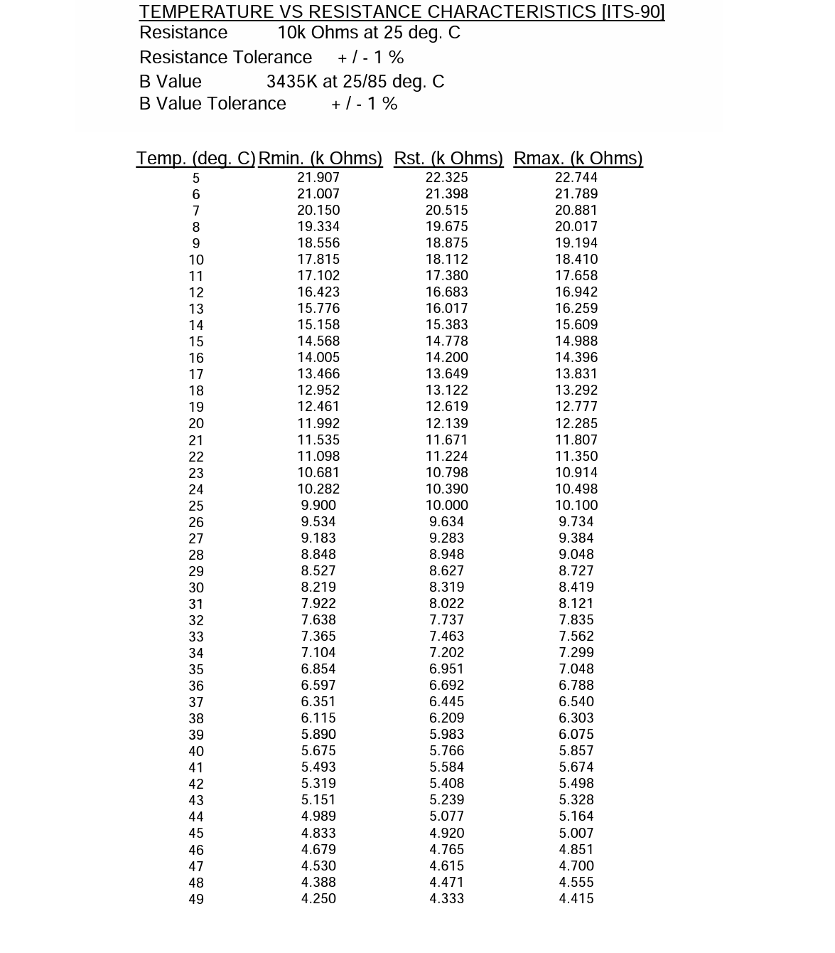 3. 電流和電壓限制:NTC熱敏電阻B值表通常會(huì)指定一定的電流和電壓限制,需要根據(jù)實(shí)際應(yīng)用確定是否符合要求。