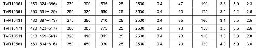壓敏電阻片徑: Φ10mm 標(biāo)稱(chēng)壓敏電壓: 470V(423~517)