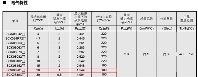 熱敏電阻型號: