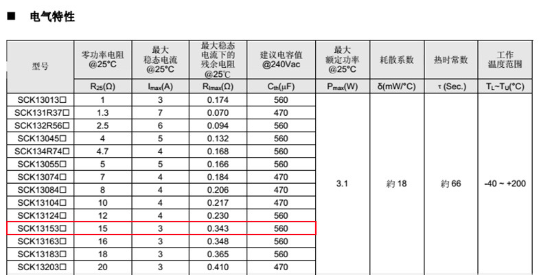 熱敏電阻型號: