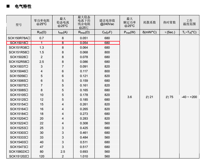 系列 D Lmin. d P Amax. Tmax. W SCK15 16.5 29 1.0±0.02 7.5±1 16.5 請(qǐng)見(jiàn)電氣特性表 請(qǐng)見(jiàn)電氣特性表