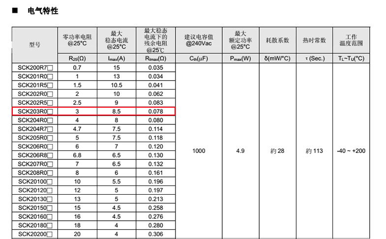 熱敏電阻: 穩(wěn)騰 熱敏電阻型號(hào): SCK203R0MSBY 熱敏電阻片徑: Φ20mm 零功率電阻@25℃: 3Ω 工作溫度范圍: -40℃±200℃ 儲(chǔ)存溫度范圍: -40℃±85℃
