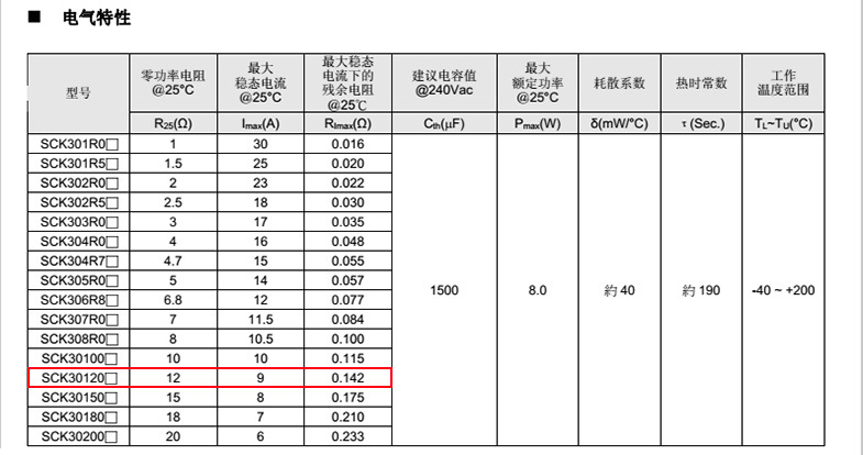 熱敏電阻: VT 熱敏電阻型號: SCK30120MSY 熱敏電阻片徑: Φ30mm 零功率電阻@25℃: 12Ω 工作溫度范圍: -40℃±200℃ 儲存溫度范圍: -40℃±85℃